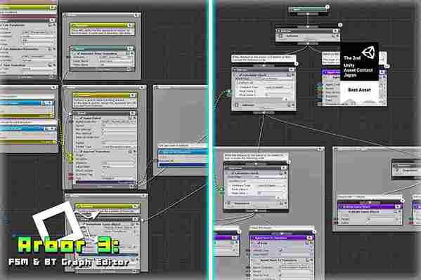 Arbor is a graphical node editor extension resource that can be used intuitively to create a state machine and behavior tree!
