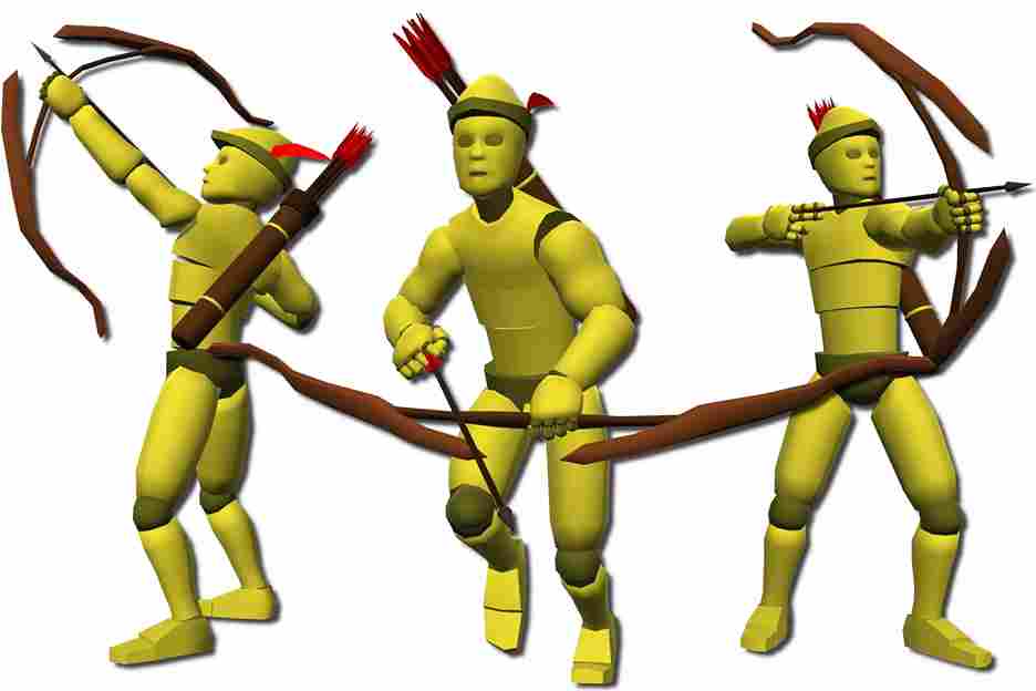 Humanoid 3D animations related to shooting arrows with a bow compatible for retargeting with other humanoid 3D characters.
