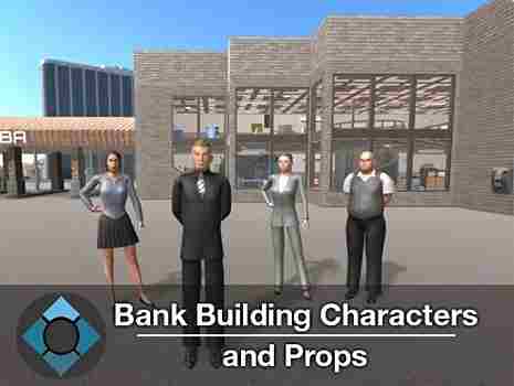 This package contains a bank building, four different body-type rigged characters with six (2048 diffuse and 512 normal map) skins, and ninety props, all featuring a low-poly style.