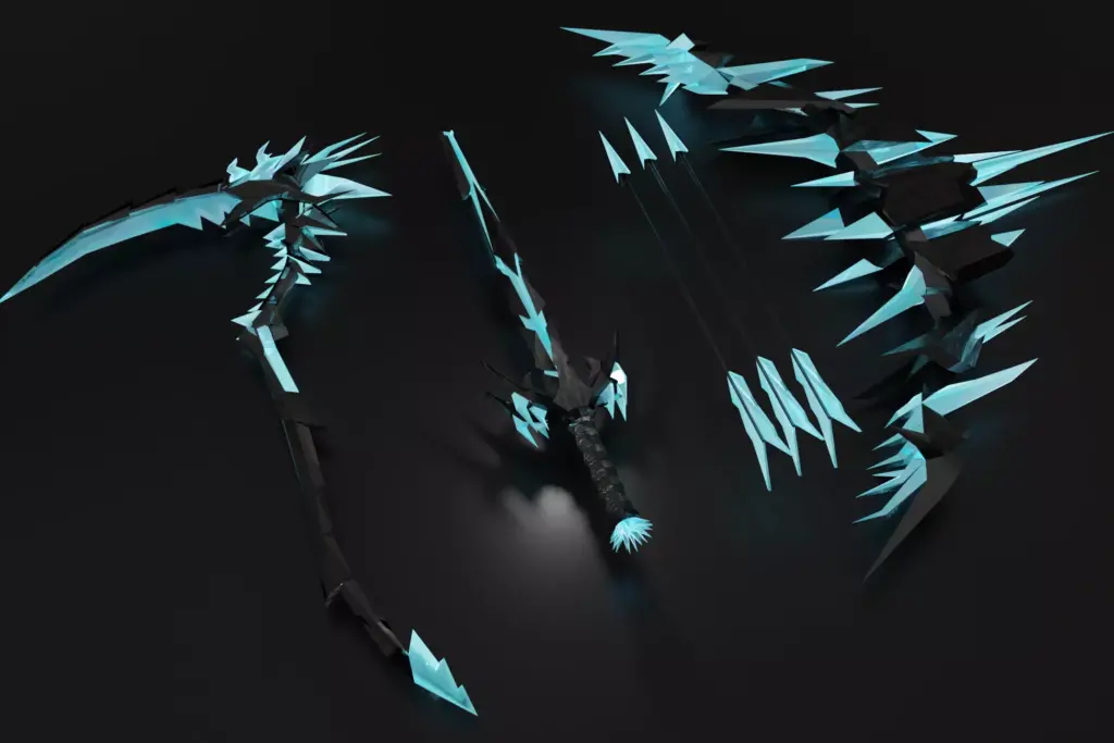 Beautiful black iron weapons with ice details. It’s a good fit for any game with melee combat, especially fantasy RPGs.