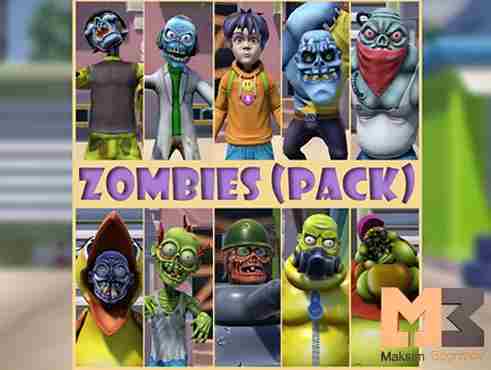 The pack contains 10 zombies with animations. Zombie characters have only a generic setting and one main character, a boy who does not have animations but has a rigg for a humanoid setting. Also, the pack contains 25 models for the environment.