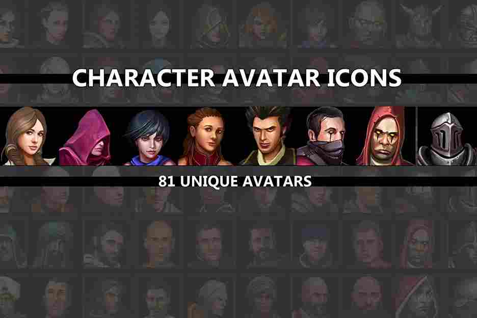 Set of 81 hand-drawn character avatar icons. All icons are of high quality. A good choice for any fantasy-themed game