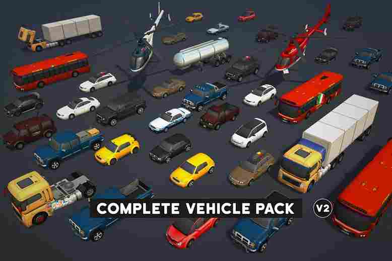 - The package contains 43 prefabs, 36 vehicles, 2 crates, an attachable trunk, and 4 extra wheels for easy customization.