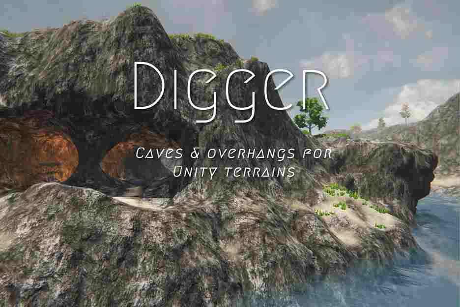 Digger is a simple yet powerful tool to dig caves and overhangs in your Unity terrains directly from the Unity editor. It gives Unity terrains the power of voxel terrains.