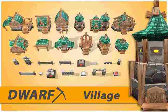 Dwarf RTS Fantasy Buildings with hand-painted textures are ready to be dropped into any game project.