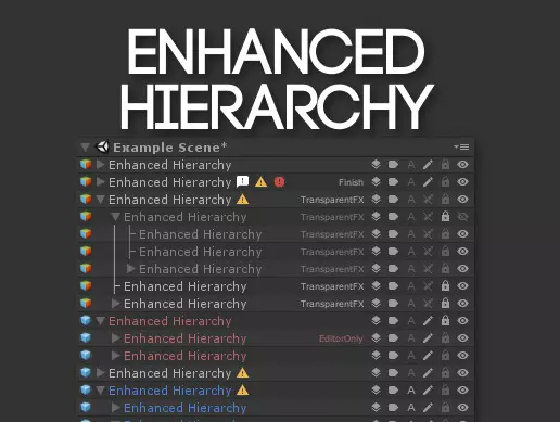 Enhanced Hierarchy 2.0 optimizes a lot of your workflow and saves you thousands of clicks by making the GameObject properties you use the most more accessible directly in your hierarchy.