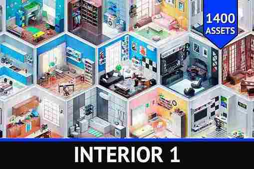 Interior 1 props pack contains a set of unique assets (1391) and a Demo scene (28 rooms).