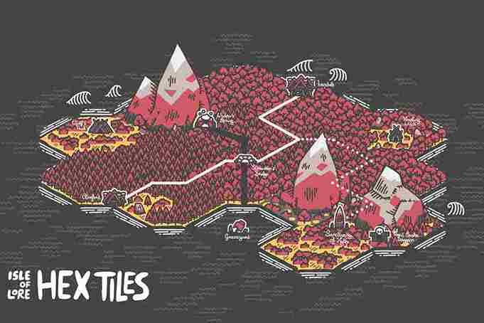 Isle of Lore: Hex Tiles covers all your fantasy map and digital board game needs with its set of hex tiles of various biomes, overlays like roads and rivers, and location icons like villages and dungeons.