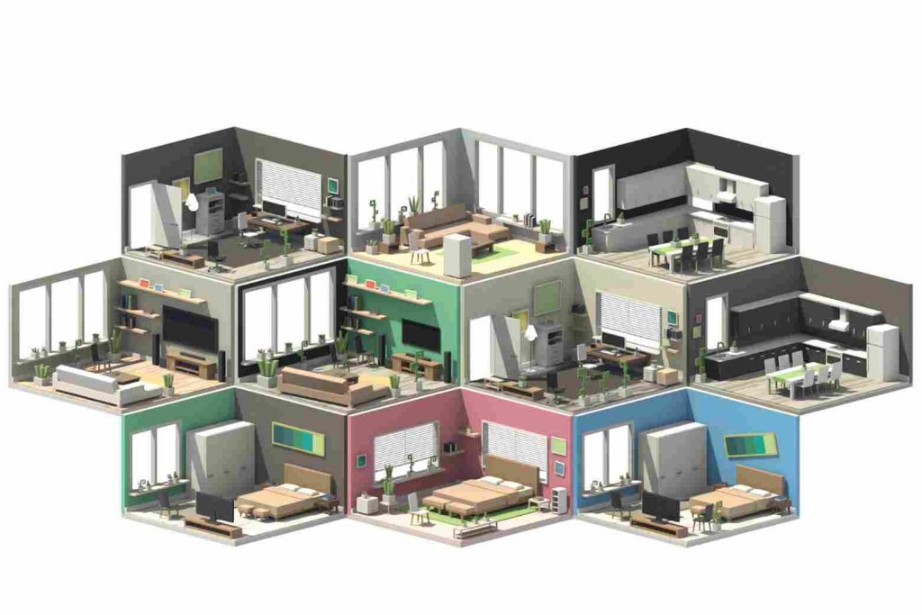 A low-poly themed game requires a stylized pack of low-poly rooms, furniture, plants, electronics, props, and environment assets.