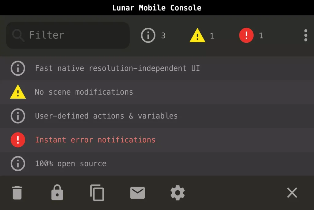 - Quick logger output access with a multi touch gesture (swipe two fingers down)