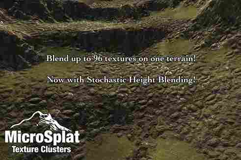 The Texture Clustering module for MicroSplat adds Texture Clustering, a procedural technique allowing for up to 96 textures on a Unity terrain, to the MicroSplat framework.