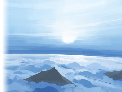 Two digitally painted skyboxes of a sky above the clouds (one with mountains and one without).