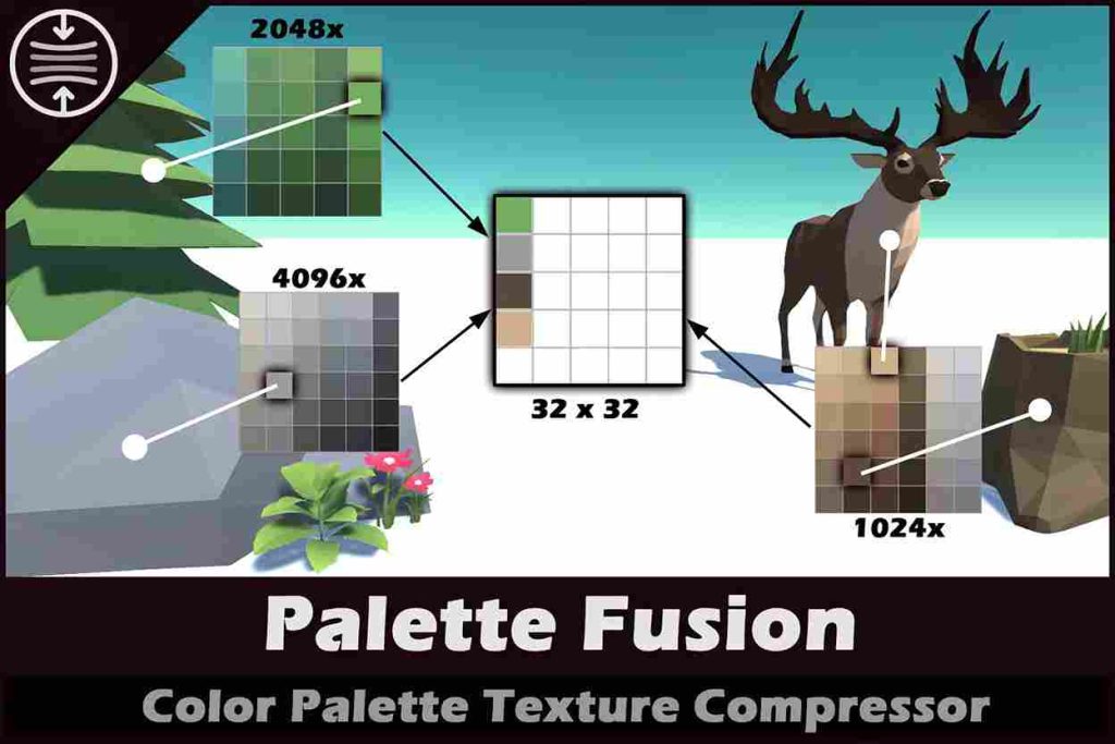 This asset is an all-in-one—Texture Atlasing, Lossless Texture Compression, and Texture Fusion—that is dedicated to working on solid colour palettes. This results in massive performance gains!