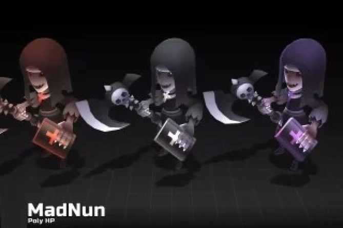 This pack contains MadNun (3251 vertex) and 3 colors textures 1024×1024 png.