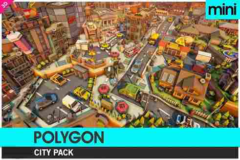 A low-poly asset pack of hexagonal tiles, cube tiles, buildings, props, and environment assets to create a hex or cube game in a city or town theme.