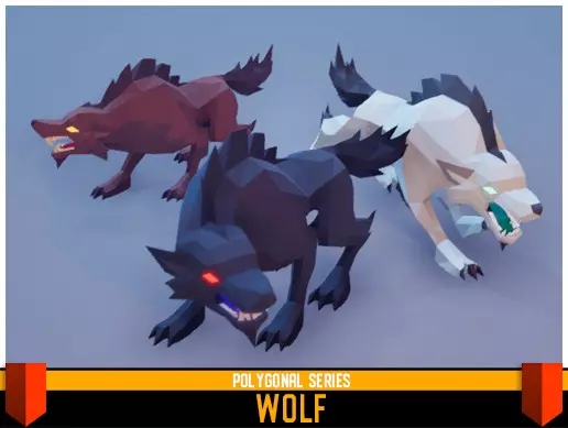This pack contains wolves. Wolf is agile and fierce. It’s rigged and animated. Textures are available in three colours. Wolf has 18 animations. Generic mecanim rig set up The triangle count is 1400.