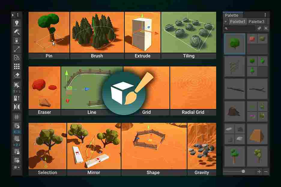 - Tiling Tool: Place objects arranged in a grid. Ideal for creating floor and walls.