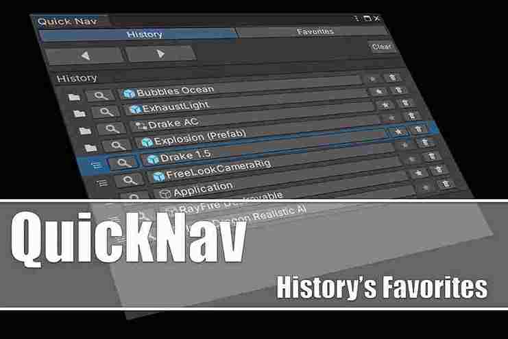 QuickNav is a Unity Editor extension that allows you to jump back and forth in your navigation history. You can record history items as favorites and open them directly in the inspector.