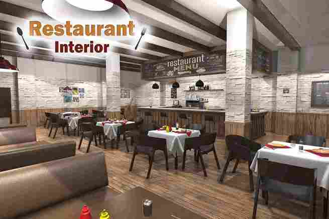 Interior of a restaurant that can also be a cafeteria, with a total of 85 different models Inside the restaurant, you can find lots of objects and furniture from a real restaurant. There are two types of tables, four types of chairs, a wooden bar, three types of lamps, decoration, etc. All the models are low-poly to be used in games and applications.