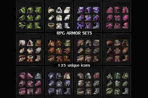 Set of 135 hand-drawn armor icons All icons are of high quality. A good choice for any game in the fantasy style All Icons have transparent and black backgrounds.