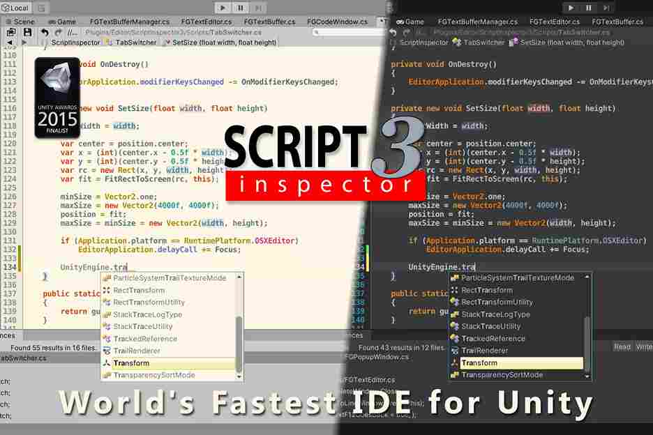 Si3 is an advanced IDE for scripts, shaders, and text assets, seamlessly integrated inside the Unity Editor. Si3 comes with context-sensitive auto-completion for C# scripts and a rich set of additional tools, keybindings, and mouse handling.