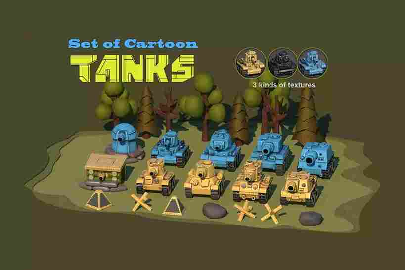 - 8 unique 3D models of tanks in the cartoon style and 16 animations for them. There is also a model of a battle tower and a bunker.