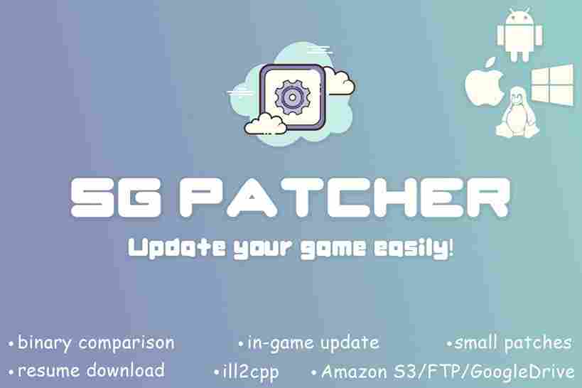 SG Patcher is a modern game update system. The system divided your game into two parts: the main part and the downloadable part. It is compatible with the following operating systems: Android/IOS/Windows/Mac/Linux/UWP/Oculus Quest.