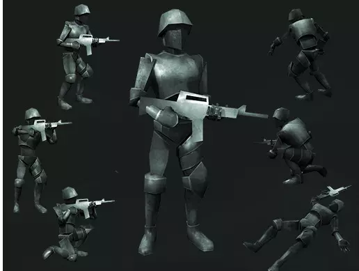- Model of soldier with rifle: 740 polygons, 1,392 triangles, and 880 vertices