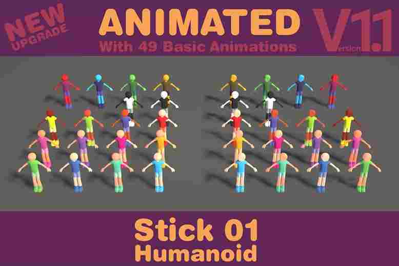 Stick Style 01, Version 1.1, with 954 polygons and 993 vertices, is the animated version.