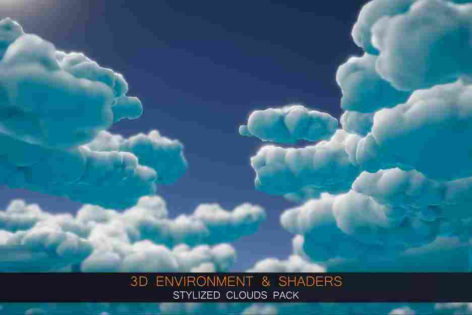 This pack includes 20 cloud meshes and a custom cloud shader, allowing you to quickly change the look of your assets. All clouds have AO and thickness anchored in best colors. The shader includes blur shading, object space gradient, and 3D simplex noise peak offset.