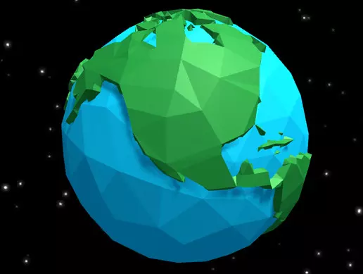 Earth’s sphere in stylized low-poly flat-shaded art! complete with a script to spin the earth, materials for the colours, texture for the stars, and documentation.