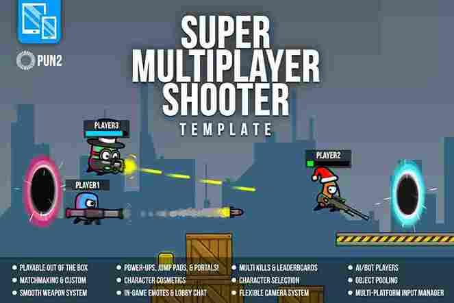 Jump-start your new multiplayer project with this easy-to-use 2D platformer shooter template.