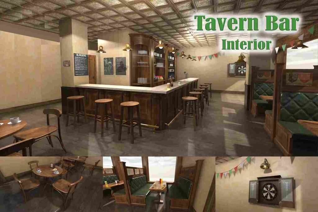 Inside of a tavern or bar with a large amount of common objects that we could find in a real one. There are a total of 61 models of furniture and utensils like glasses, cups, bottles, mugs, etc. Other objects like a coffee machine, a till, two types of lamps, a dart board, and decorative paintings are included. All the models are low-poly to be used in games and applications.
