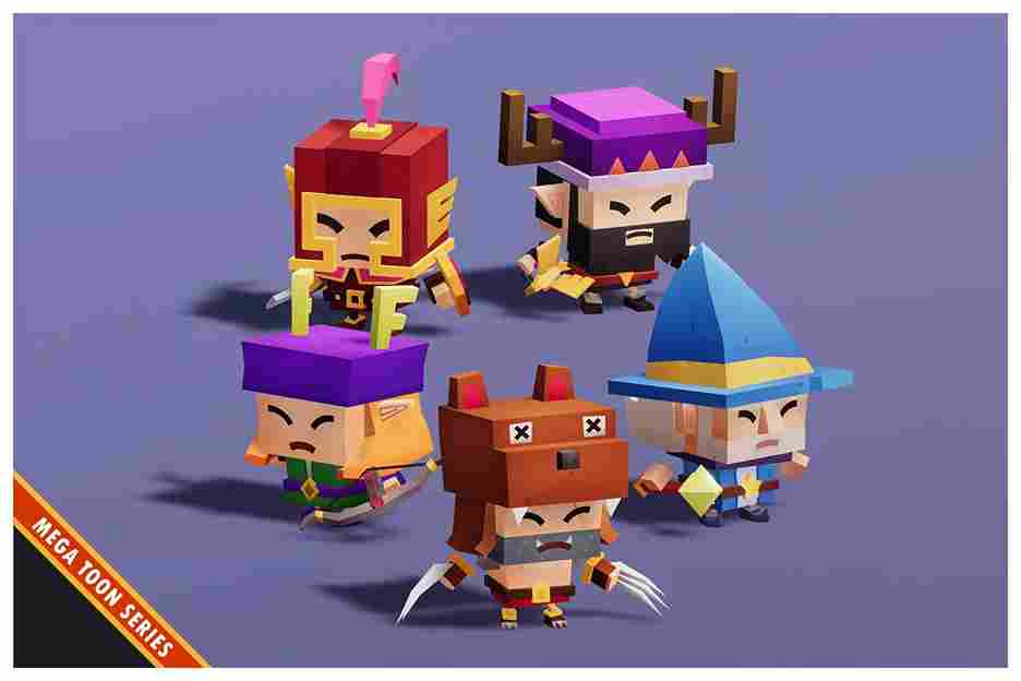 This pack contains 5 characters: Paladin, Druid, Wizard, Archer, and Barbarian. They are very low poly. The poly count for each character is around 380–600 triangles.